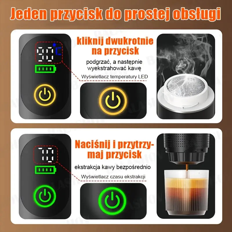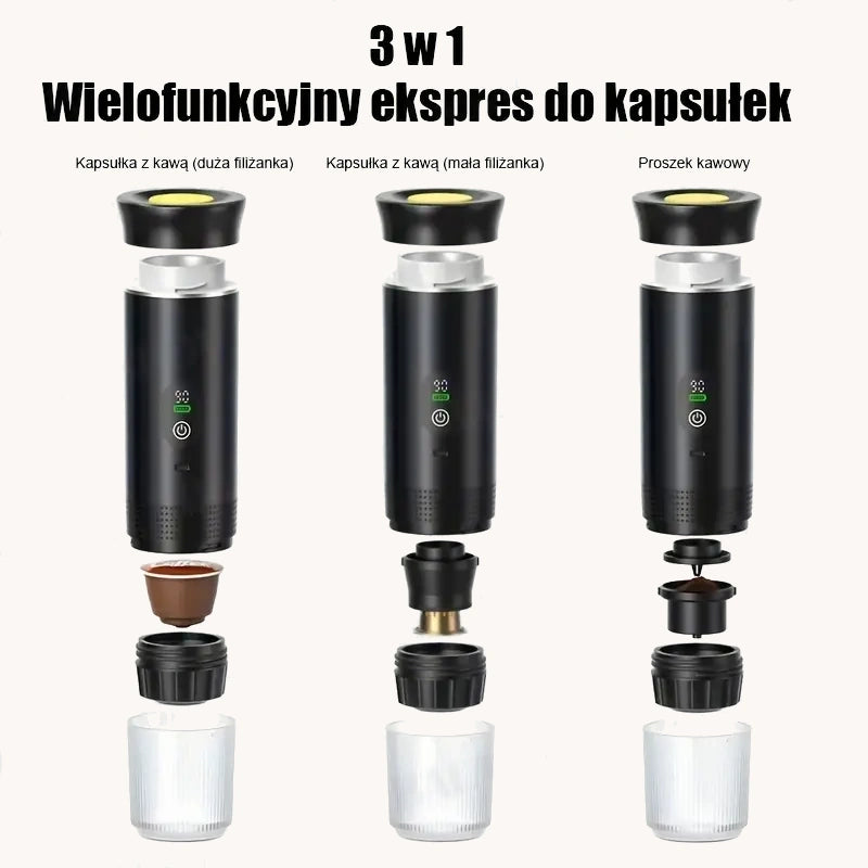 Przenośny ekspres do kawy na kapsułki i kawę mieloną